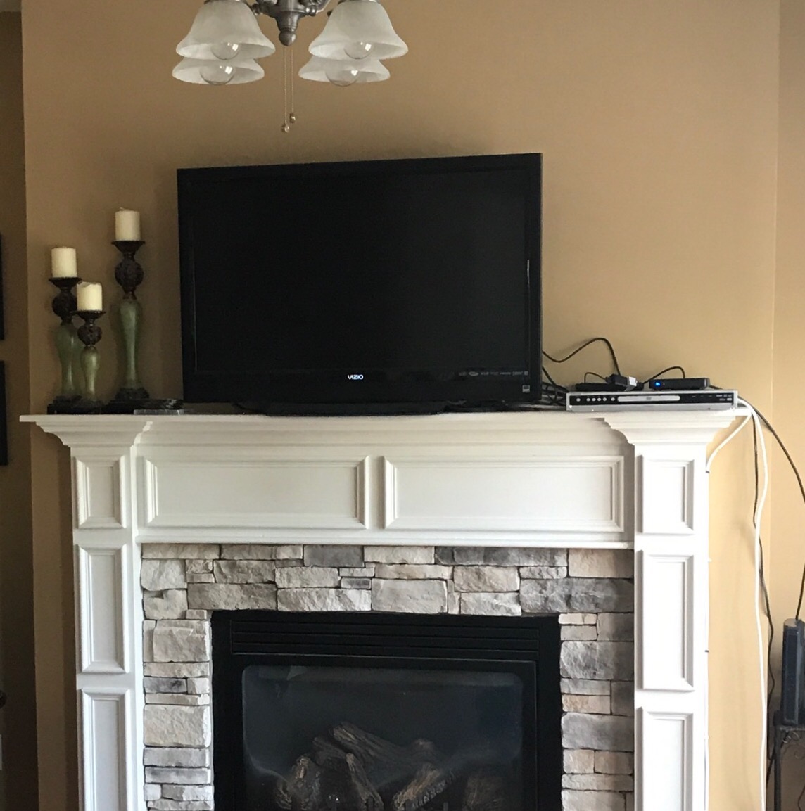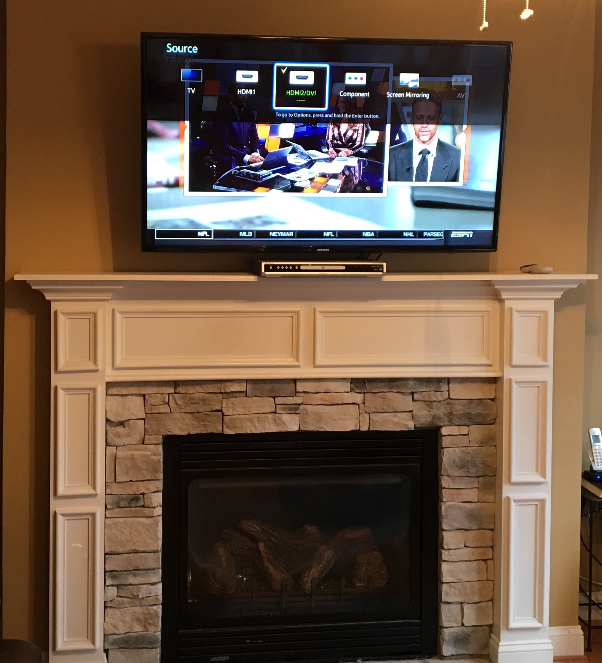Today we installed a Samsung smart 4K TV above a fireplace. We can still the cables behind the TV out of the view of our customer also provided wall plate covers for a clean professional look!
